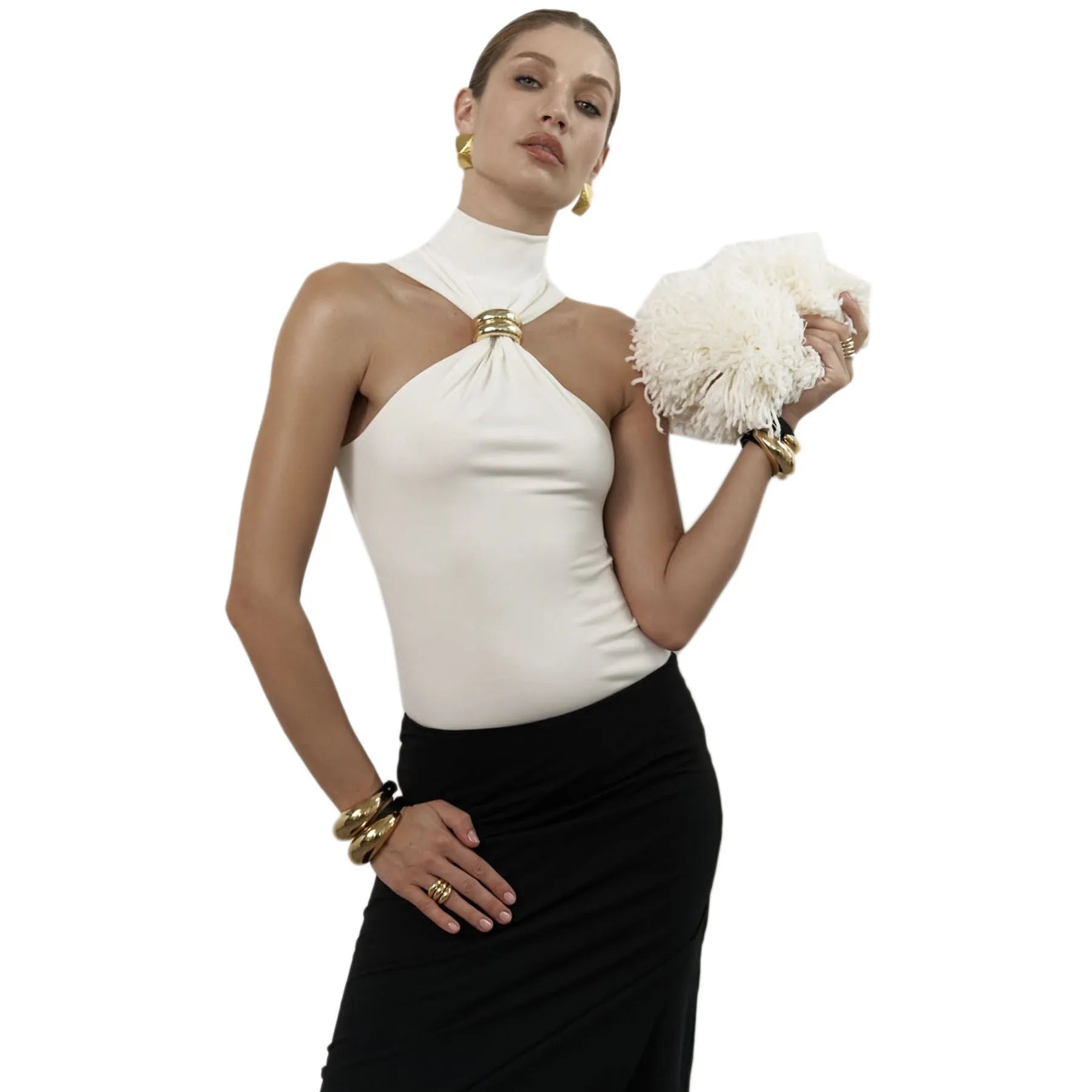 GlowCurve is designed for the bold and confident woman who loves to shine. Its sleek silhouette and metal-ring detailing add an edgy, modern twist to a classic crop top. Perfect for summer parties or night outs, this off-shoulder patchwork piece hugs your curves while letting you move freely. Step out, turn heads, and let your style glow with GlowCurve